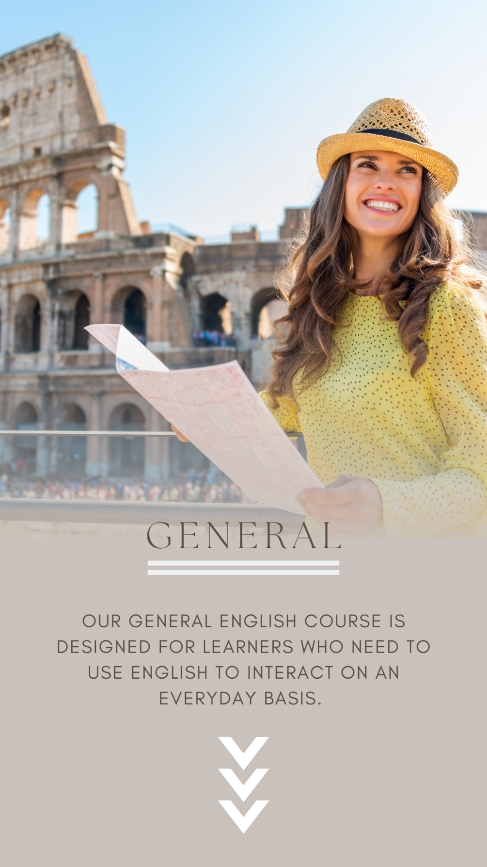 Our General English Course is designed for learners who need to use English to interact with English speakers on an everyday basis. The course teaches accurate English grammar for conversation, listening and speaking skills for daily life, and reading and writing skills for social and employment purposes.